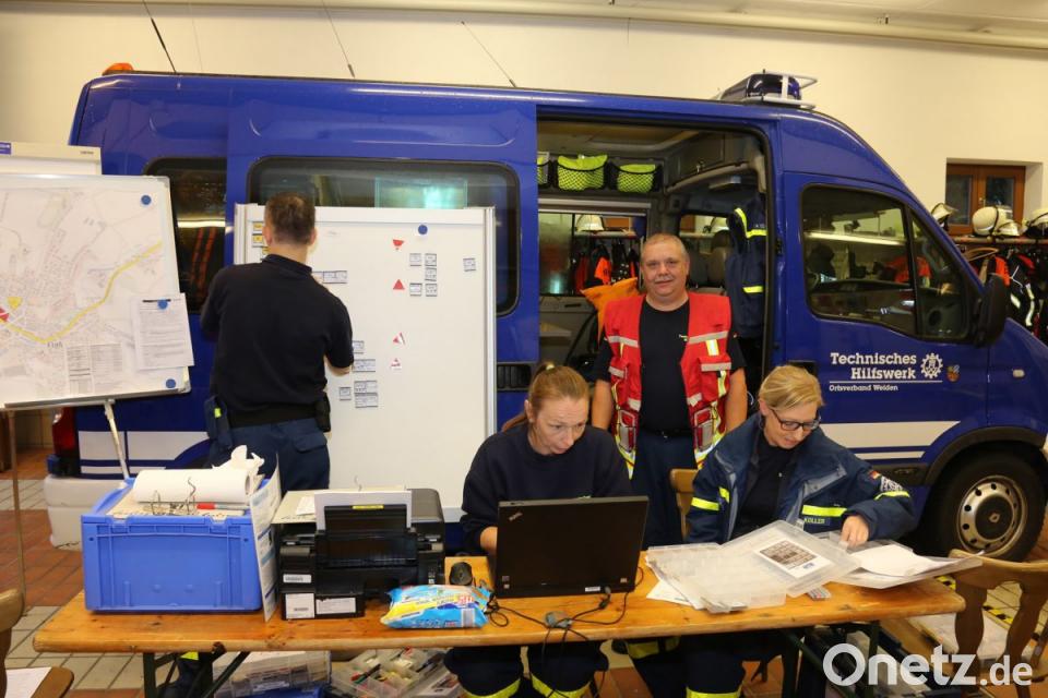In der Einsatzzentrale in Floß werden die nötigen Arbeiten koordiniert.