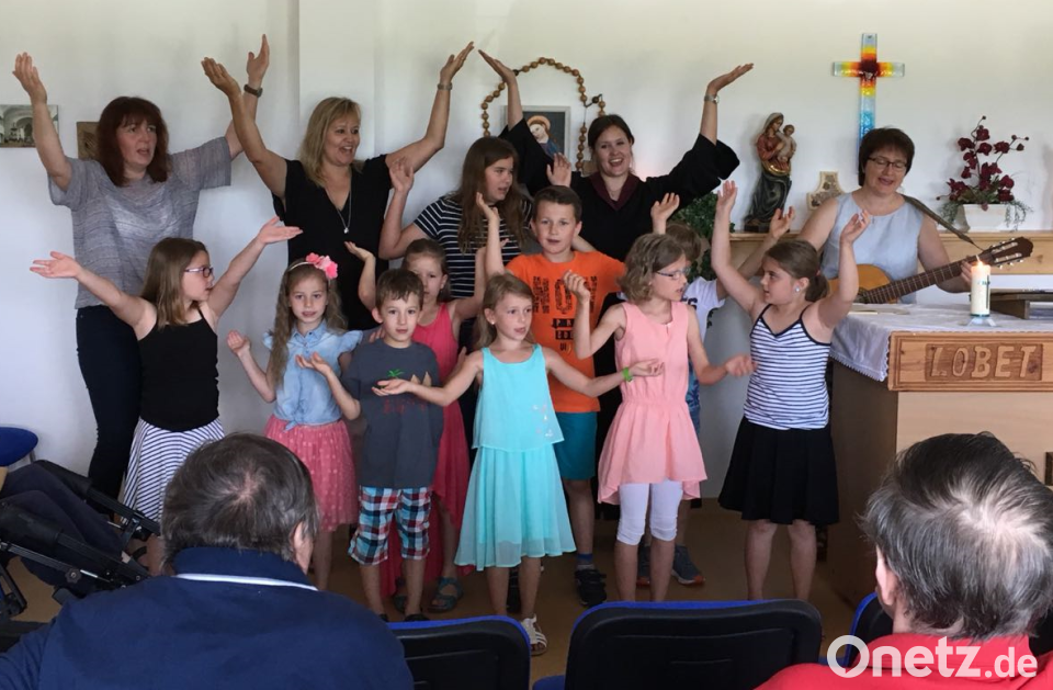 Zu Besuch waren die Jüngsten der evangelischen Kirchengemeinde St. Johannes Baptista. Gemeinsam mit Pfarrer Wilfried Römischer feierten sie Gottesdienst. Ein besonderes Highlight für die Senioren waren die von den Kindern und Betreuerinnen aufgeführten beiden Lieder mit Texten und Bewegungen zum Vater unser. Der Grund für den Besuch der Kinder und Jugendlichen war die feierliche Übergabe der KiGo-Kollekte. Die Jüngsten der Gemeinde hatten über viele Wochen hinweg jeden Sonntag in ihren Gottesdiensten für das Seniorenwohnheim gesammelt und erreichten schließlich eine Summe von 125 Euro. Dieser Betrag wurde am Ende des Gottesdienstes an das Heim übergeben mit dem Wunsch der Kinder, Bastelmaterial für die Senioren anzuschaffen.