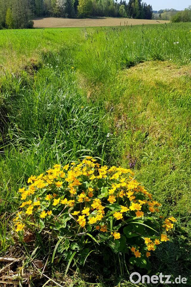 Wer in der Natur genauer hinschaut, findet auch weitere, leuchtend gelbe Pflanzen. Die Sumpfdotterblume war in Deutschland 1999 „Blume des Jahres“. Mit dieser Wahl sollte damals stellvertretend auf den Artenverlust aufmerksam gemacht werden, der durch die Begradigung von Bächen und die Trockenlegung vormals feuchter Wiesen und Niedermoore entsteht. Aber noch gibt es sie, die unberührten Bachläufe wie hier bei Floß, die naturbelassen sind und in der sich die Sumpfdotterblume wohlfühlt und prächtig gedeiht.
