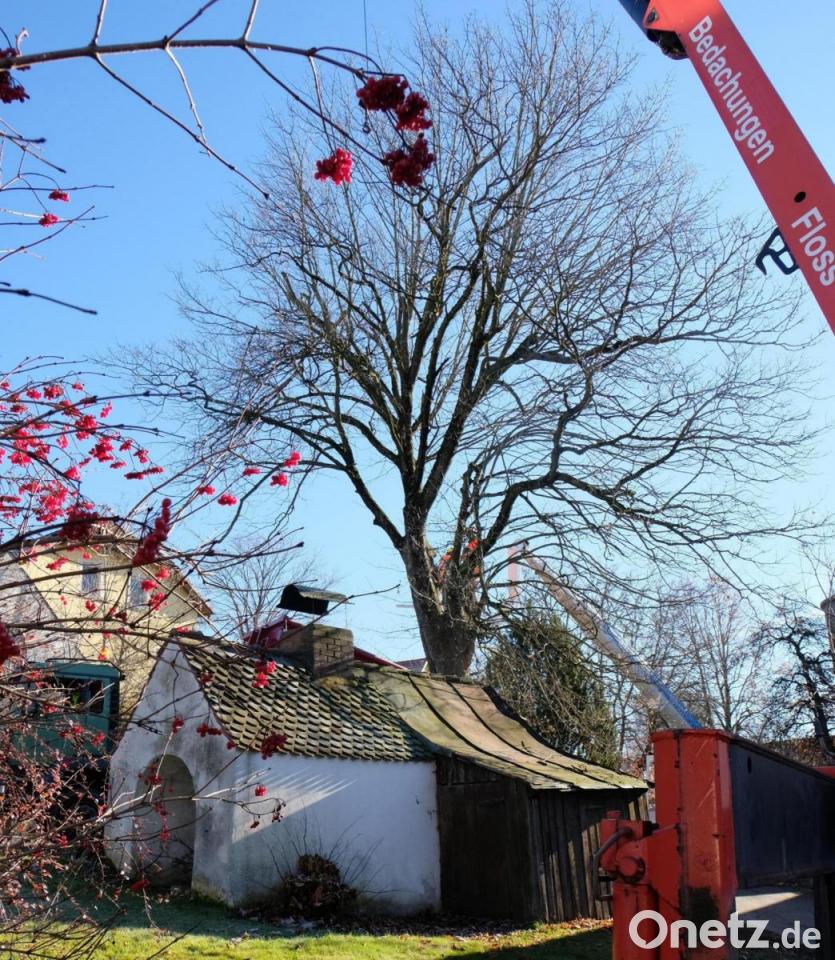 Das Team des Bauhofs war am Dienstag im Einsatz, unterstützzt von der Flosser Dachdeckerfirma Dieter Hofmann mit Hochkran. Eine Ersatzbepflanzung wird es an dieser Stelle nicht geben.