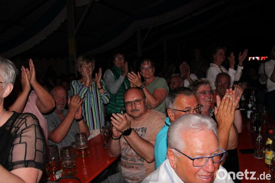 Noch kurz vor Beginn der Vorstellung war der Lärmpegel hoch, wie er eben in einem vollen Bierzelt herrscht. Bedenken, ob sich die zierliche Person auf der Bühne mit ihrer Stimme und ihrer Gitarre auch durchsetzen könnte, waren durchaus angebracht. Doch die oberbayerische Kabarettistin hatte mit ihrer Art und ihrem Humor das Publikum von Beginn an auf ihrer Seite samt ungeteilter Aufmerksamkeit.