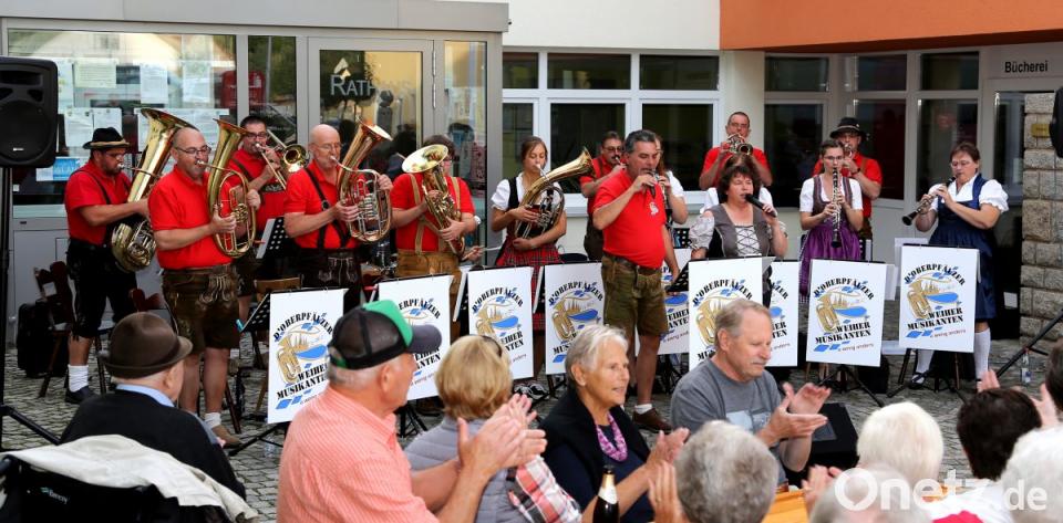 Die Gruppe ist inzwischen auf 20 Musikanten gewachsen. Sängerin und Moderatorin Brigitte Beer führte humorvoll durchs Programm. Neu ist, dass sie mit dem Kapellmeister ein Gesangsduett bildet. Wieder einmal war der Vorplatz des Rathauses die perfekte Kulisse für die Polkas und Märsche verschiedener böhmischer Komponisten. Dementsprechend groß fiel der Applaus aus. Für das leibliche Wohl sorgte Präsidentin Gisela Mutterer mit ihrem Team von den "Flosser Adlern".