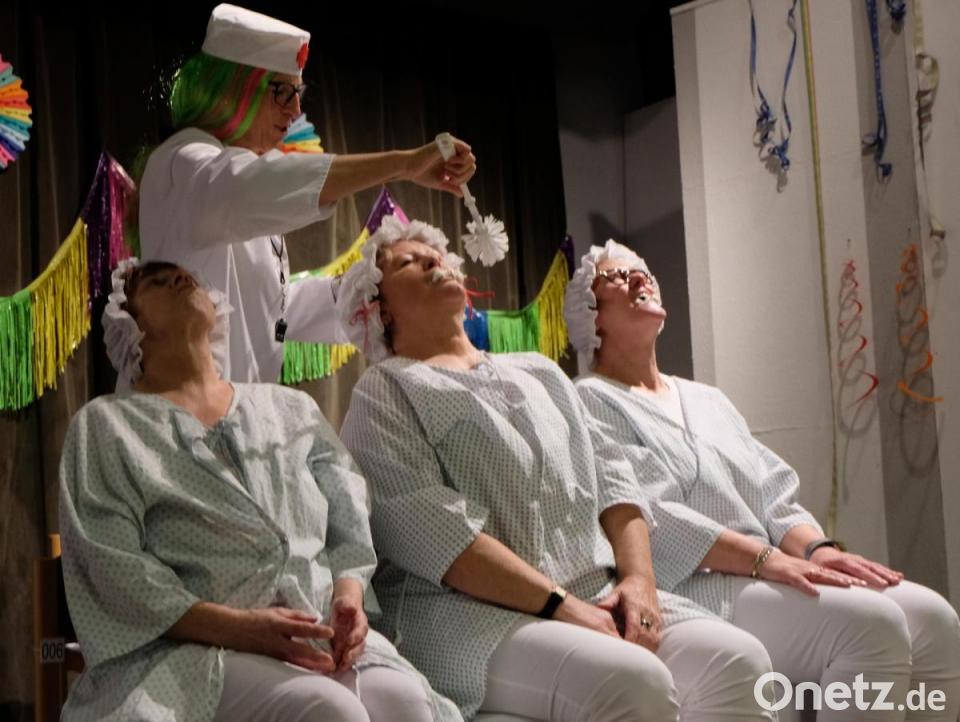 Noetzel hatte mit ihrem verkleinerten Team einen Bomben-Auftritt mit dem Sketch "Sparmaßnahmen im Altenheim". Was und wie sich alles bei der Körperreinigung, dem Händewaschen und Zähneputzen, beim Toilettengang im Heim auf einen Pfiff abwickelt, führte zu wahren Lachsalven. Schauspielerisch perfekt und gekonnt präsentierte die Gruppe den Sketch. .Die Verabschiedung der Laienspieler war umso herzlicher.