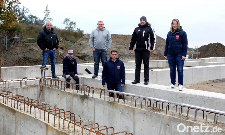 Nach dem Spatenstich im Juni ging es mit den Bauarbeiten Schlag auf Schlag. Die nun vollbrachte Fertigstellung der Fundamente ist ein Meilenstein. Ein Blick von oben lässt erahnen, wie die der fertige Bau aussehen wird. Die neue Fahrzeughalle wird etwa 470 und das Verwaltungsgebäude 520 Quadratmeter groß. Das bedeutet einen Größenzuwachs von etwa 20 Prozent gegenüber dem alten Gebäude. Alles ist ebenerdig angeordnet, um die Arbeitsabläufe zu erleichtern und Barrierefreiheit zu erreichen. Besonders stolz sind die Verantwortlichen der Wehr, dass fast alle Ideen aus der Vorplanung Realität werden. Es wird eine vollautomatische Schlauchwaschanlage angeschafft, die die personal- und zeitintensive Arbeit erleichtert. Überdies wird es großzügige Sozialräume mit modernen Umkleiden geben. Auch alle Leistungsprüfungen mit Hydranten und Übungsflächen können künftig vor Ort absolviert werden. Zudem sind 30 Parkplätze geplant. Im Landkreis einzigartig wird der in der Planung befindliche Übungsturm sein.