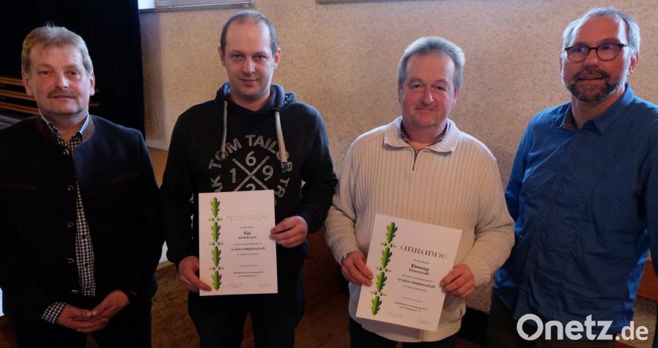 Nach dem Bericht des Revierförsters Sebastian Höllerer ehrten die Verantwortlichen für 40 Jahre Mitgliedschaft Georg Völkl und Rudolf Lindner, Gailertsreuth. Die Betriebe Pfaffenzeller, Haupertsreuth, Bergler, Gailertsreuth, Einweg, Diebersreuth, und Käs, Schönbrunn, halten der WBV seit 50 Jahren die Treue.