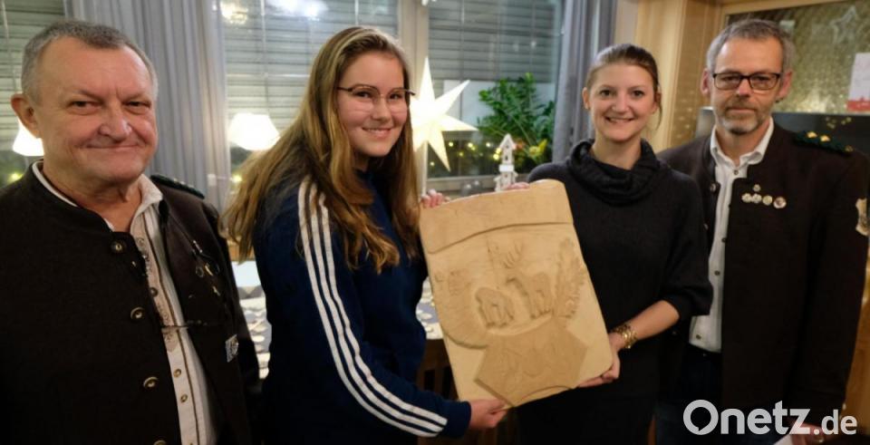 Ilona Hunsperger hatte eine neue Ehrentafel angefertigt. Bisher gab es nur Ehrenscheiben. Als Motiv hatte die Künsterlin "Eichenblatt mit Hirsch und Wildschwein" gewählt. Die Königsfeier war für Hunsperger die passende Gelegenheit, ihr kleines Kunstwerk zur Erinnerung an ihrem 30. Geburtstag an die Königlich privilegierte Schützengesellschaft 1834 zu übergeben. Helena Scherm ist bereits die erste Siegerin der neuen Ehrentafel durch einen 7-Teiler.