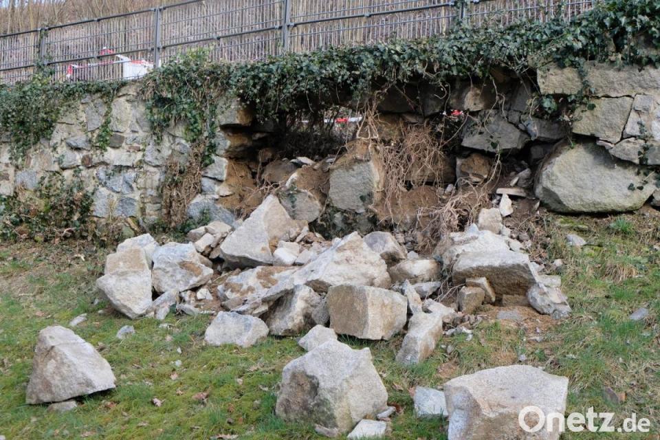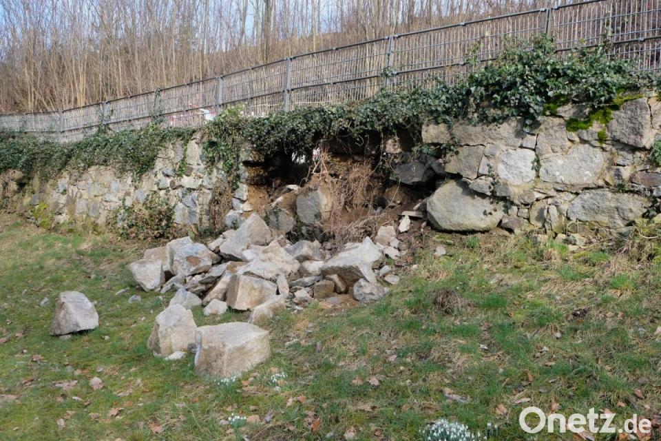 Damals war das stark und auffällig wuchernde Efeu der Grund des Schadens. Wahrscheinlich ist es im erneuten Fall wieder so. Außerdem grenzt die Mauer an einen steil abfallenden Böschungsbereich, der sich durch starke Regenfälle der vergangenen Wochen in Richtung Mauer bewegte. Der Schaden dürfte mit Sicherheit nicht durch Fremdeinwirkung oder gar Vandalismus entstanden sein.