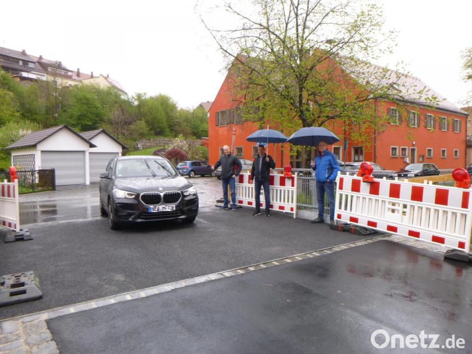 Bürgermeister Robert Lindner fuhr in seinem schwarzen Dienstwagen am Mittwochnachmittag als Erster über die neue Floßbach-Brücke, die damit wieder freigegeben ist - allerdings nur für Fahrzeuge bis 7,5 Tonnen. Zur Abnahme war Markus Schieder von der Zwick Ingenieure GmbH aus Weiden nach Floß gekommen. Der Planer und Bauüberwacher stellte keine Mängel fest.