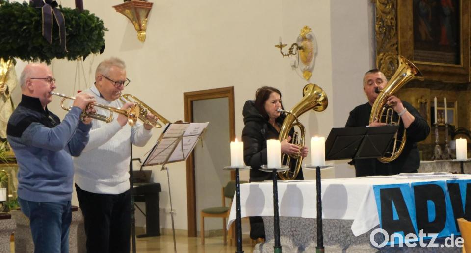 Vorher hatten auf Einladung der VR-Bank das Bläserquartett der Stadtkapelle Pleystein und die Sitzweilgruppe Miesbrunn festliche, einfühlsame Musik gespielt. Dazu passten die ernsten und heiteren Worte von Sprecher Max Frischholz. Das Arrangement lag wieder in den Händen von Karl Putzer. Ganz andere Klänge als üblich waren in der dunkel gehaltenen Pfarrkirche zu hören, als das Bläserquartett beispielsweise „A Liachterschein liegt über’m Land“ intonierte. Birgit Käs stimmte die Gäste mit ihrem Gedicht „Wann fängt Weihnachten an“ auf den Advent ein. Die Miesbrunnen Sängergruppe unter Leitung von Karl Putzer trug unter anderem „Jetzt is halt scho da Summa aus“ und „Staade Weis“ vor. Zuletzt spielte und sang sich die Sitzweilgruppe mit „Schoi langsam wird’s still“ und „Leis erklingt das Lied“ in die Herzen der Zuhörer. Kräftiger Applaus ließ nicht lange auf sich warten.
