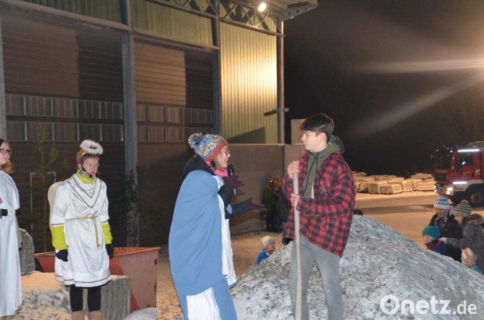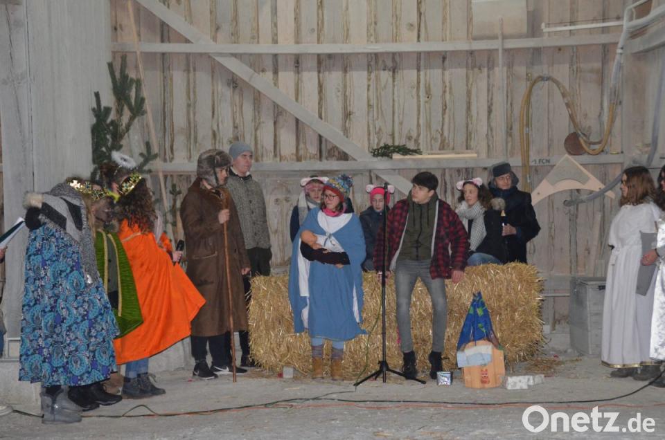 Das Publikum merkte schnell, dass die Weihnachtsgeschichte mit einigen lustigen Szenen aufgelockert worden ist. Regie führten Carmen Memminger, Marlies Meiler und Alexandra Pfab. "Da ist man aufgeregter, wie wenn man selber spielt", gab Pfab kurz vor Beginn zu. Das Wetter spielte auch mit. Es war zwar sehr kalt, aber von oben was er trocken und so ließ es sich bei heißem Glühwein und Kinderpunsch und Bratwurstsemmeln dem Wetter trotzen.