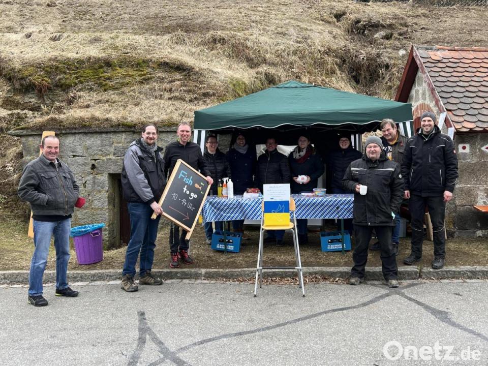 Die Genossen hatten ihren Stand am alten Backofen am Ortsplatz aufgebaut. Eine gute Stunde nach Beginn waren die Fischsemmeln zum ersten Mal aus. Drei Mal gelang es, auf die Schnelle Nachschub zu organisieren, gegen 13.30 Uhr war endgültig Ende mit Lachsersatz und Hering. Nicht wenige Flossenbürger standen vor dem leeren Stand.