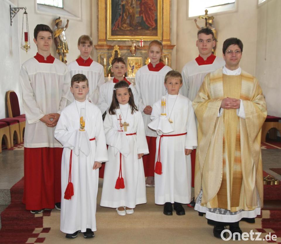 Etwas blass um die Nase und ein wenig aufgeregt waren die zwei Buben und das Mädchen beim Morgengebet im Theresienheim schon. Das legte sich schnell, als es mit den Eltern, Pfarrer Georg Gierl, den Ministranten und angeführt von der „Blaskapell’n Flossenbürg“ hinauf zum festlich geschmückten Gotteshaus ging. Was es mit dem Motto „Licht“ auf sich hat, erläuterte der Geistliche in der Predigt.
