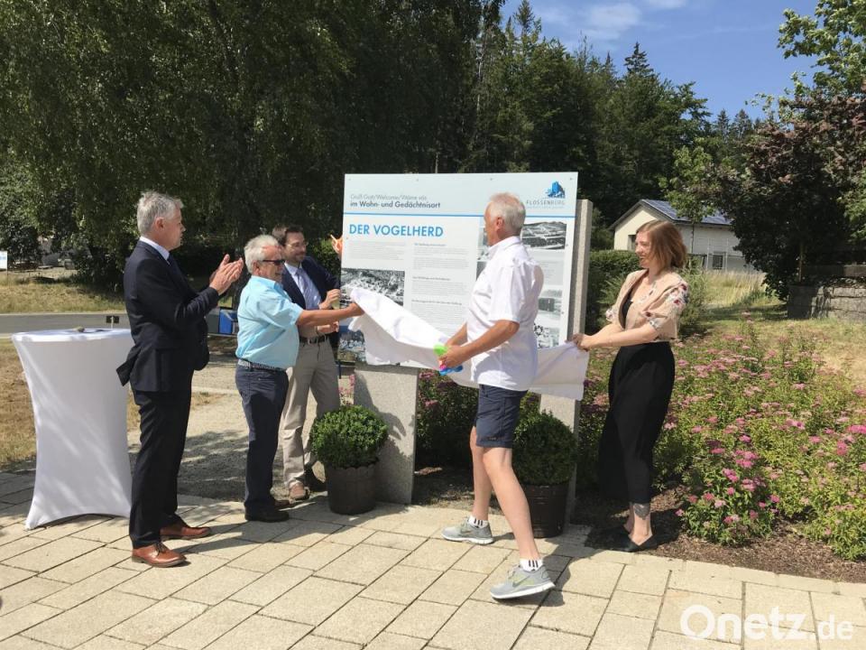 Als „Wohn- und Gedächtnisort“ wird der Vogelherd auf der Tafel bezeichnet. Die Texte beschreiben in Kurzform, wie es Ende der 1950er Jahre zu dem Bau der Wohnhäuser für Vertriebene auf dem Grund der einstigen Häftlingsbaracken kam. Bürgermeister Thomas Meiler dankte in dem Zusammenhang den Vogelherd-Bewohnern Werner Richter und Roland Pichl, die Möller ganz besonders unterstützt haben. Zum Abschluss verschiedener Städtebaumaßnahmen am Vogelherd seien auch zwei Plätze mit Bänken geschaffen worden; der besondere Zusammenhalt der Siedlung habe sich erst wieder beim jüngsten Straßenfest mit mehr als hundert Besuchern gezeigt.