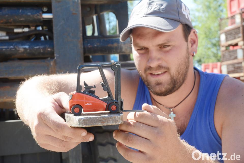 Max Üblacker: Ja, das ist es. Aber das macht den Reiz aus. Der Stapler ist ja eher ein grobmotorisches Fahrzeug, und normalerweise bewege ich damit Gitterboxen, Paletten oder größere Metallteile. Es braucht Erfahrung, Geschick, technisches Verständnis und auch räumliches Vorstellungsvermögen. Und es fährt ganz viel Glück mit!