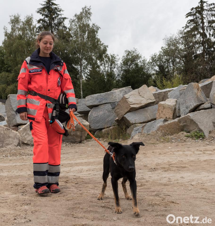Gerade passende Gebäude für die Trümmersuche seien schwer zu finden. „Oft sind sie baufällig und somit für Übungszwecke ungeeignet“, so Lutter. Der Steinbruch simuliert ähnliche Bedingungen wie bei Unglücken mit Schutt und Geröll. „Die Flächensuchhunde können sich frei bewegen, unterschiedliche Umgebungen erkunden und je nach Tier mit Bellen oder mit stillen Anzeigen dem Trainer den Fund ankündigen.“ Auch die Personenspürhunde-Mantrailing, die an der Leine geführt werden, leiten nach Aufnahme einer Geruchsprobe die Teams zum Zielobjekt.