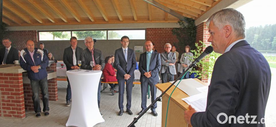 Hans-Michael Pilz war vom zuständigen Neumarkter Amt für Ernährung, Landwirtschaft und Forsten gekommen. Als lokale Managerin war Daniela Franz vom Landratsamt dabei. 1,1 Millionen Leader-Euro stehen für die Zeit von 2014 bis 2020 im Landkreis zur Verfügung. Davon flossen alleine schon 160 000 Euro in den Jugendzeltplatz: „Das zeigt den hohen Stellenwert.“ Den unterstich in seiner Ansprache auch der stellvertretende Landrat Albert Nickl: „Heute ist ein guter Tag für Flossenbürg und für den gesamten Landkreis. Die getätigten Investitionen sind ausgezeichnet angelegtes Geld.“ Mit dem gelungenen Werk sei Ausdauer, Wille und Ideenreichtum unter Beweis gestellt worden. „Auch wenn es ein schwieriger Weg war, er weist in die Zukunft.“