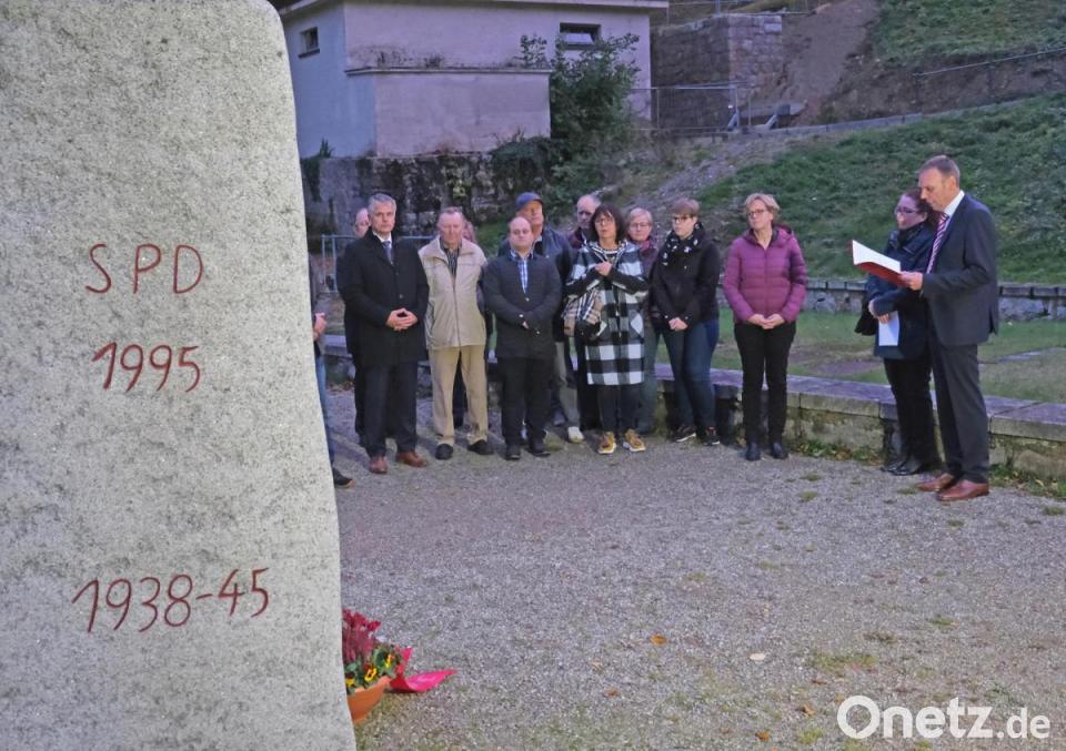 Tief bewegt ließ sich am Freitag die Vorsitzende der Landes-SPD vom örtlichen Vorsitzenden Roman Schell und von Andrea Egner über das Geschehen von 1938 bis 1945 und die folgende Entwicklung der Gedenkstätte informieren. Kohnens Reaktion: "Was damals geschah, sprengt jede Vorstellungskraft. Es ist gut und wichtig, dass sich Albert Schwägerl vehement für einen solchen 'Stein des Anstoßes' engagierte." Das Mahnmal aus einem mächtigen Granitblock gilt der Erinnerung an alle Opfer und ist speziell den Toten in den Reihen der SPD gewidmet.
