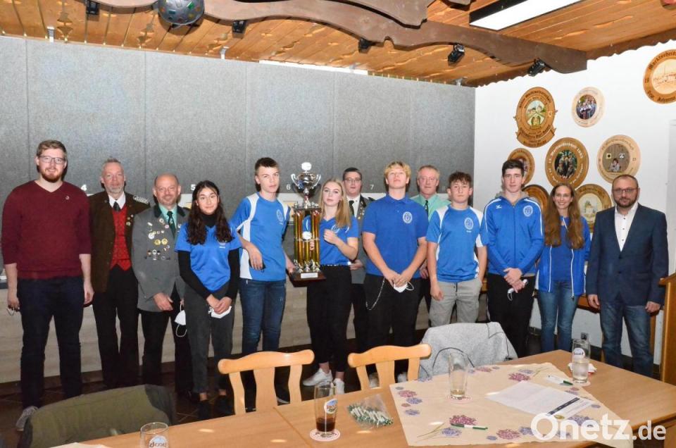 Der Schützennachwuchs aus dem Altlandkreis Vohenstrauß gab sich kürzlich ein Stelldichein unweit des Alten Grenzübergangs. Mit Spannung verfolgten die Teilnehmer mit ihren Begleitern die Bekanntgabe des vor zwei Wochen erstmals wieder möglich gewordenen Gemeinschafts-Wettbewerbs. Gemeinsam gelang es den "Enzian"-Schützen Melike Tiryaki (19,1-Teiler) mit dem Geschwisterpaar Julia Mack (25,0) und Fabian Mack (47,0), den Oberlinder „St.-Thomas“-Schützen die in Frankenreuth seit zwei Jahren schmerzlich vermisste Gaujugend-Trophäe endlich wieder abzugewinnen. Deren Trio Sabine Beierl (24,3), Julius Kellner (33,5) und Sophie Licha (42,9) kam auf Platz zwei.