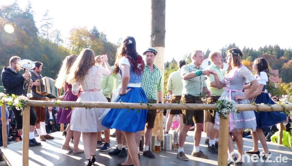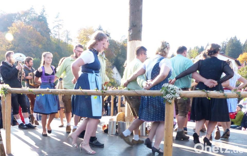 Fesch sahen die Kirwapaare in Dirndl und Lederhose aus, als sie angeführt von den Musikanten und dem letztjährigen Oberkirwapaar Christina und Daniel das Tanzpodest bestiegen und von den zahlreichen Zuschauern mit Applaus begrüßt wurden.