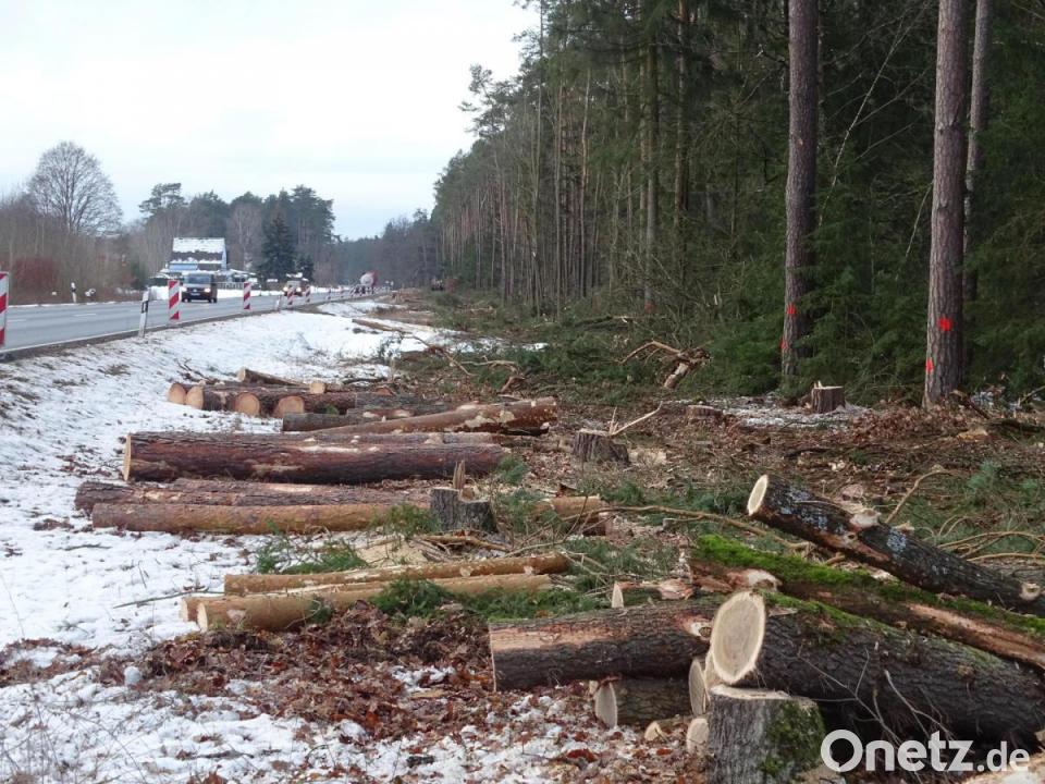 Um die Trassierung zu gewährleisten, sind zunächst Baumfällarbeiten am Rand eines nahezu durchgehenden Waldstücks neben der Staatsstraße in Richtung Amberg notwendig. Weil dazu eine fahrbare Maschine eingesetzt wird, gehen sie zügig vonstatten. Die Realisierung des Projekts war dem Fensterbacher Bürgermeister Christian Ziegler seit geraumer Zeit ein Anliegen. Allerdings gab es langwierige Grundstücksverhandlungen, bis nun endlich die Arbeiten begonnen werden konnten.