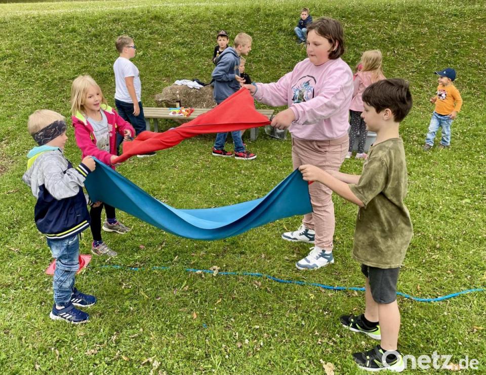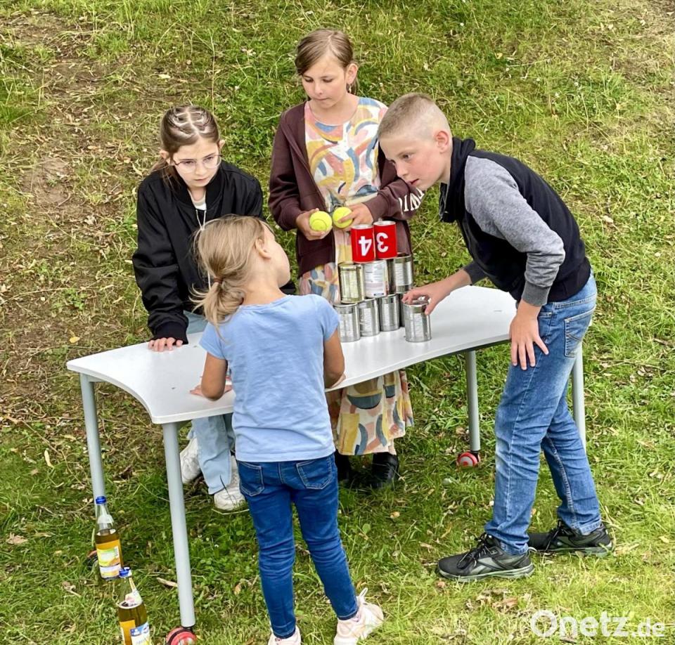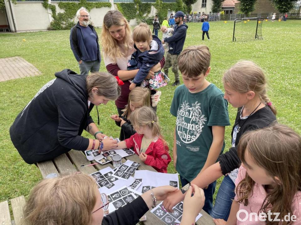 Anschließend lud die Rektorin Kinder und Eltern zu „Spielen mit Spaß und Essen“ ein. Hier war einiges geboten. Die neu angeschafften Kettcars waren im Dauerbetrieb. Einige Kinder betreuten einen Spiele-Parcours, Fußball auf Kleinfeldtore war möglich, beim Seilziehen maß man die Kräfte. Eltern boten einen Stand zum Basteln an oder halfen, Mini-Tattoos auf die Arme der Kinder aufzutragen.