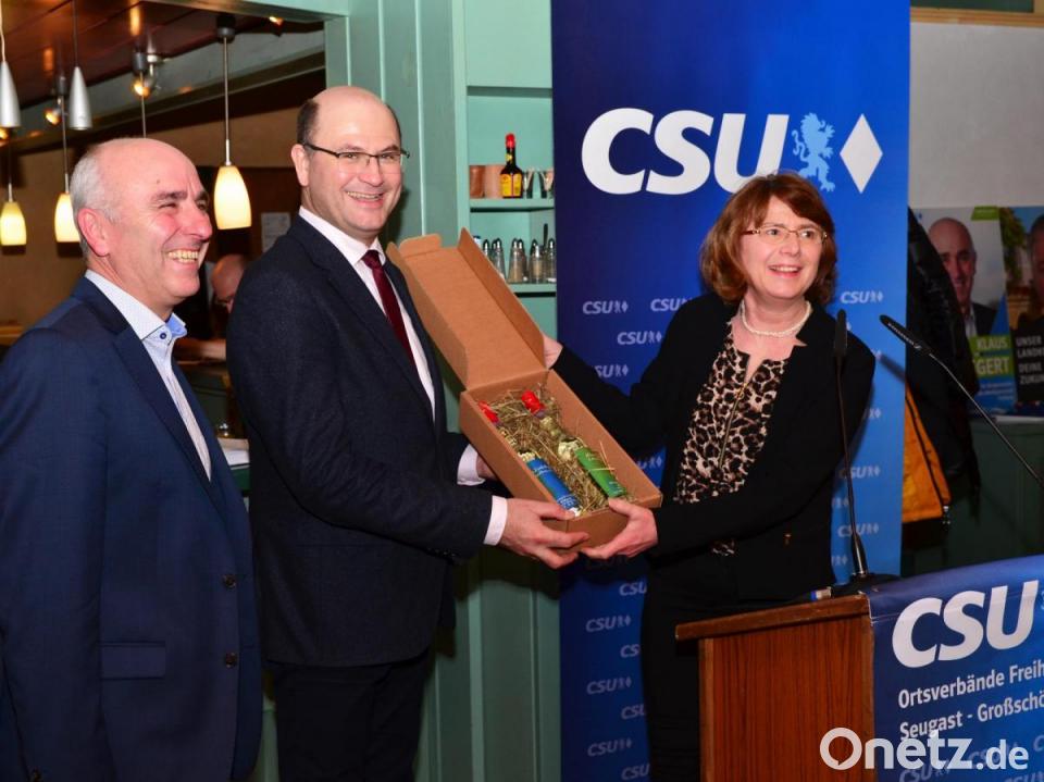 Die Ortsvorsitzende Erika Urban freute sich, das Füracker sein vor einiger Zeit gegebenes Versprechen eingehalten habe, die Marktgemeinde Freihung, insbesondere den CSU-Ortsverband zu besuchen. Bürgermeisterkandidat Klaus Siegert nahm die Gelegenheit war, dem Staatsminister die Marktgemeinde Freihung vorzustellen und die anstehenden Aufgaben der Zukunft darzulegen. Als Schwerpunkte nannte Siegert unter anderem dabei die Ausweisung von Bauplätzen und Gewerbegebieten, die Sanierung der Josef-Voit-Grundschule sowie die Erhaltung und den Ausbau der gemeindlichen Infrastruktur. Er wies auch auf die besondere Lage der Marktgemeinde am südlichen Rand des Truppenübungsplatzes Grafenwöhr und der damit verbundenen Belastungen hin.
