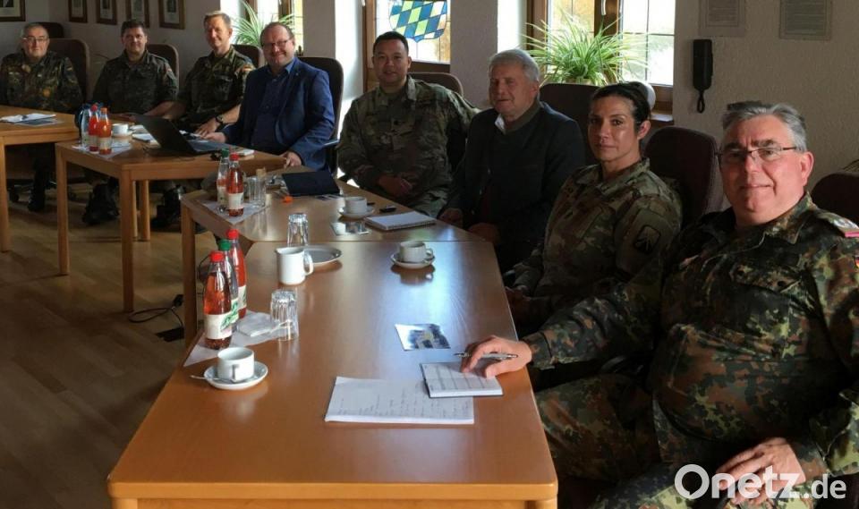 Zu einem ersten Vorbereitungsgespräch im Hinblick auf das anstehende Jubiläum hatte Bürgermeister Uwe König den Kommandeur des Logistikbataillons 472 aus Kümmersbruck, Oberstleutnant Sebastian Erbe, und den neuen Kommandeur vom 18. CSSB, LtCol John Abella, ins Freihunger Rathaus eingeladen. Die Reservisten wurden von den beiden Vorsitzenden Norbert Bücherl und Gerhard Lindthaler vertreten. Zu Beginn stellte der Rathauschef den Gästen Freihung anhand des für das Jubiläumsjahr 2019 gedrehten Imagefilm in englischer Sprache vor und erläuterte anhand einer Powerpoint-Präsentation Daten der Kommune.