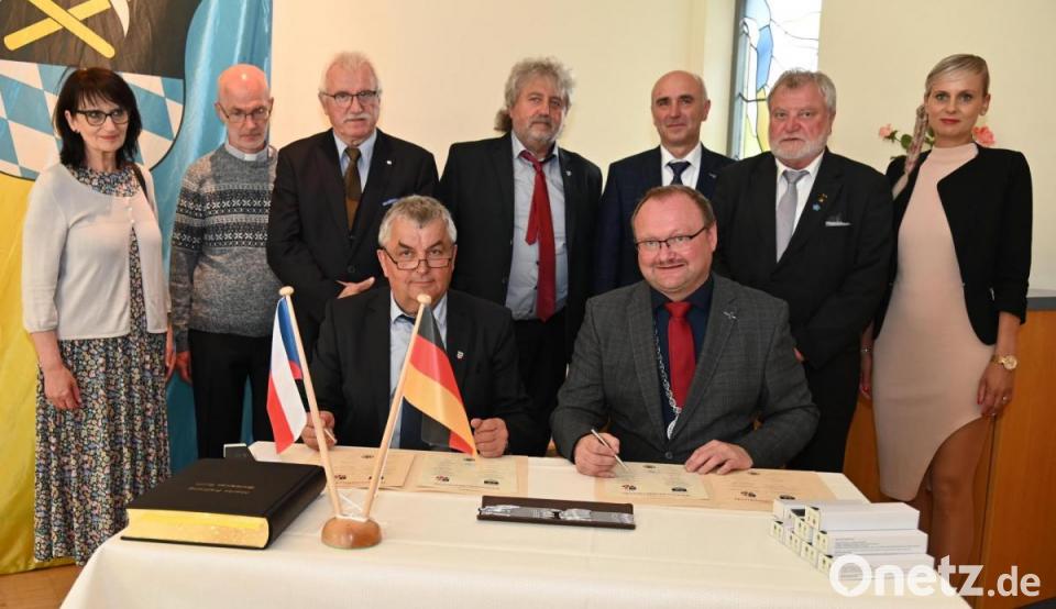 Beim Festakt im Freihunger Pfarrheim erinnerte Bürgermeister Uwe König daran, dass vor 20 Jahren Hartmut Schendzielorz bei einem Frankreichbesuch die Idee hatte, jungen Menschen bewusst zu machen, wie wichtig dauerhafter Frieden in Europa sei. "Der Angriffskrieg auf die Ukraine hat nicht nur auf die dortige Bevölkerung Auswirkungen. Die ganze Welt ist betroffen, unser Leben beeinträchtigt, etwa durch Preissteigerungen für Lebensmittel und Energie. Unsere schöne Welt wurde von einer brutalen Realität eingeholt", sagte König. Vor 20 Jahren verdeutlichte Hartmut Schendzielorz laut Bürgermeister mit bewundernswertem Engagement den Jugendlichen die schrecklichen Ereignisse zweier Weltkriege mit 60 Millionen Toten, heute litten über 100 Millionen Flüchtlinge unter teilweise jahrzehntelangen Konflikten. Im Volksbund Deutscher Kriegsgräberfürsorge habe Schendzielorz einen Partner gefunden. Freihunger Gemeinderäte knüpften demnach Kontakte zur tschechischen Stadt Plasy, es gab einen Schüleraustausch und gegenseitige Besuche. Heute werde die Partnerschaft mit der Unterzeichnung der Partnerschaftsurkunden verfestigt, sagte König. Die Partnerschaft solle auf den Ebenen Kultur, Sport und Musik umgesetzt werden. Er hoffe, dass sich die Menschen grenzübergreifend kennenlernen, schätzen und respektieren.