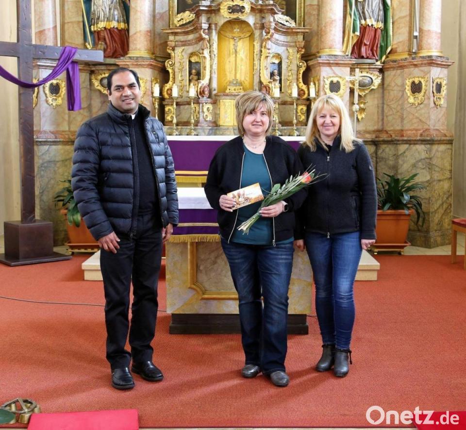 Auch im Großschönbrunner Pfarrgemeinderat stand eine Verabschiedung an. Pfarrer Benny Joseph und die Sprecherin des Pfarrgemeinderates, Annette Nübler, bedankten sich bei Ingrid Wiesneth für insgesamt acht Jahre Mitarbeit in Pfarrgemeinderat. Sie habe in dieser nicht einfachen Zeit die Ministranten betreut und sich sehr prägend in das kirchliche Leben mit eingebracht. Viele Gottesdienste und Feste habe man gemeinsam gestaltet. Für diesen großen Einsatz in den zurückliegenden Jahren bedankte er sich.