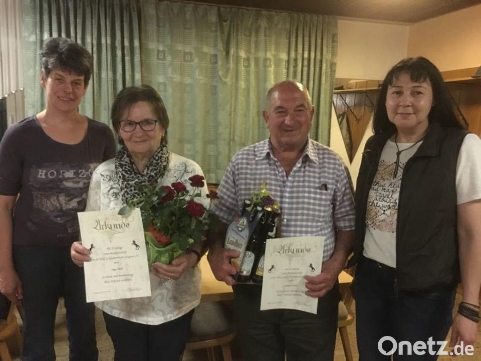 Großschönbrunn-Seugast. Ehrungen und Rückblicke standen bei der Jahreshauptversammlung der Reitsportgemeinschaft im Gasthof Goldener Anker in Kaltenbrunn auf der Tagesordnung. Vorsitzende Christa Bauer ließ die Aktivitäten Revue passieren. So erwähnte sie die Teilnahme am Pfingstritt in Kemnath am Buchberg, das Ponyfest und den alljährlichen Tagesritt nach Ödputzberg mit Grillabend. Es folgte der Kassenbericht vom Kassier Christian Schwirzer. Der Revisor bestätigte eine hervorragende Kassenführung. Weiterer Tagesordnungspunkt war die Ehrung für 25-jährige Mitgliedschaft im Verein. Für ihre langjährige Treue wurden Inge und Ottmar Iberl geehrt. Bauer erinnerte an die aktive Zeit der Jubilare und übergab jeweils eine Urkunde und ein kleines Geschenk.