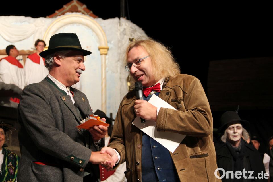 Zum Abschluss der Brandner-Festspiele der Freudenberger Bauernbühne wurde Benno Schißlbauer für 40 Jahre aktives Theaterspiel und 25 Jahre Spielleitung geehrt. Vereinsvorsitzender Norbert Altmanndankte dem "Brandner Kaspar" (Schißlbauer spielte die Titelrolle) für sein "jahrzehntelanges großartiges Engagement für die Bühne". Er sei ein exzellenter Volksschauspieler und hervorragender Spielleiter, der immer den richtigen Riecher für die passenden Stücke habe, sagte Altmann. Die offizielle Ehrung nahm Guido Rind, der Vorsitzende des Bezirks Oberpfalz des bayerischen Amateurtheaterverbandes, vor. In seine Laudatio verpackte er alle Stücke, in denen Benno Schißlbauer mitgewirkt hat, in perfekter Willy-Astor-Manier.
