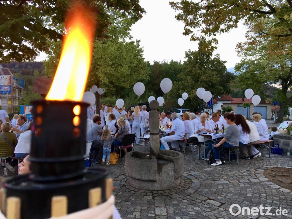 Das Experiment, zu dem der Heimat- und Kulturverein Freudenberg und die Frauen-Union gemeinsam in sozialen Netzwerken aufgerufen hatten, kam sehr gut an. Pünktlich nach der Abendmesse strömten von allen Seiten weiß gekleidete Freudenberger und Wutschdorf an den Brunnen, wo kurz zuvor noch der Brandner Kaspar aufgeführt worden war. "Wir sind begeistert", bilanzierte Barbara Gerl. Die Häppchen und Snacks bildeten ein riesiges und wohlgemerkt kostenloses Büffet. Besondere Zutat war die Musik, die DJ Chicken spontan im Bushäusl auflegte.