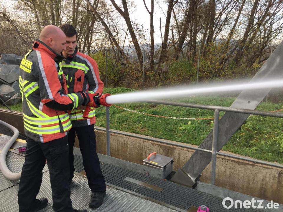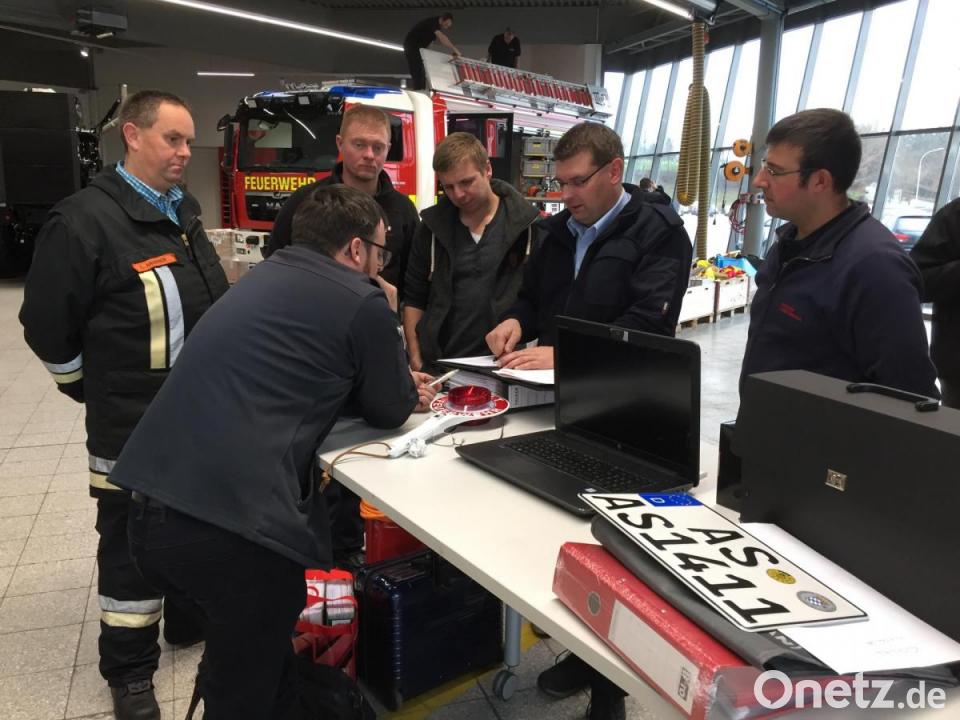 Zuerst fließt Wasser durch die neuen Schläuche und Pumpen der beiden Amberg-Sulzbacher Fahrzeuge, dann ein spezielles Schaumgemisch, das zum Beispiel für Flüssigkeitsbrände eingesetzt wird. Und auch die Martinshörner erklingen hier zum ersten Mal. Überhören kann man sie nicht.
