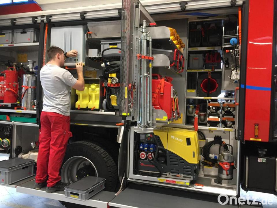 Philipp Tschautscher von der Firma Rosenbauer geht mit den Feuerwehrleuten alles durch: "Schaut's auch auf die Beschriftung, ob's passt". In Österreich gibt es teilweise andere Bezeichnungen für einzelne Gerätschaften. "Und wenn was zwickt, schreibt's es auf die Liste." Diese Autos sind Prototypen, da ist es ganz normal, dass es hier und da etwas nachzubessern gibt. Das wird erledigt, bevor die Feuerwehrleute am Freitag die Heimreise antreten. Natürlich mit den neuen Autos: Die sind bereits zugelassen, die Kennzeichen haben die Kommandanten mitgebracht.