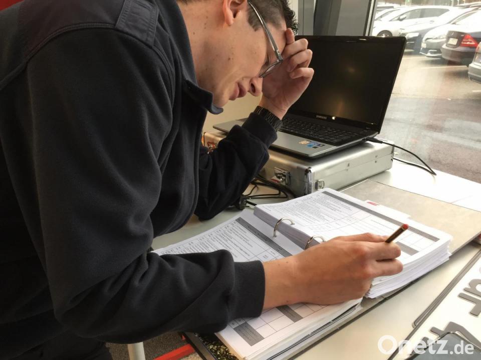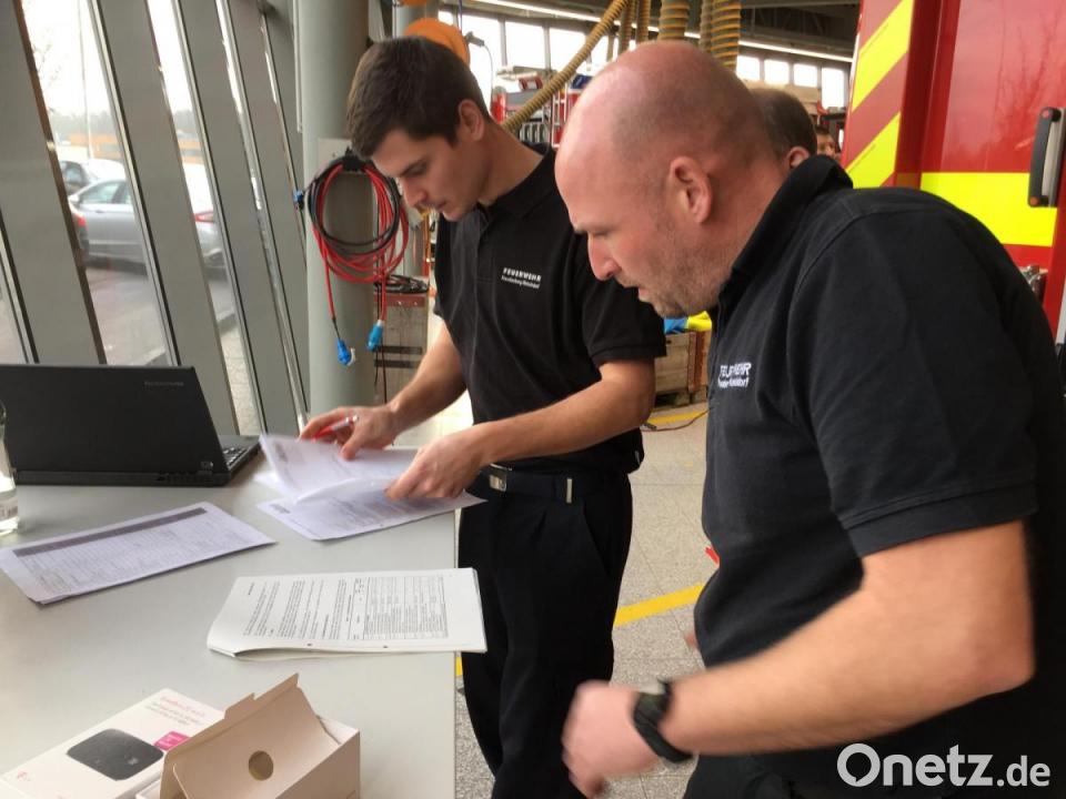 Dann geht es ans Eingemachte. Die umfangreiche Ausschreibung muss Schritt für Schritt durchgegangen werden. Ist alles da, was da sein muss? Andere Aktive aus den Reihen der beiden Feuerwehren prüfen unterdessen, ob die Ausstattung der Fahrzeuge passt, ob sie dort ist, wo sie sein soll, ob Türen aufgehen, Größen stimmen, nichts hakt oder klemmt.
