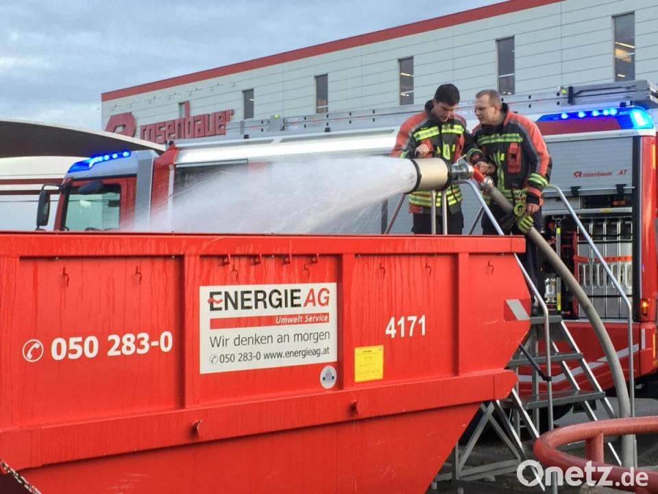 Die wird dann auch gleich ausprobiert. Dazu geht es auf ein nahegelegenes zweites Firmengelände, wo Rosenbauer auch die nötigen Testeinrichtungen vorhält.