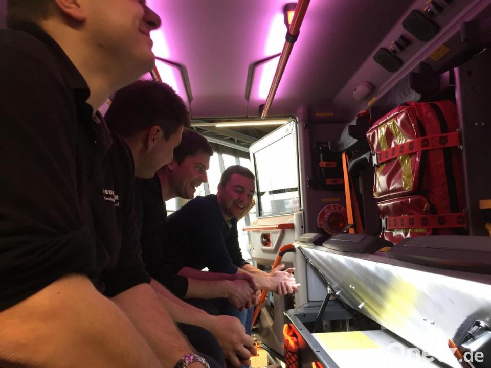 Und als es am frühen Abend dunkel wird, kann auch noch eine weitere Einrichtung getestet werden: Der Lichtmast, der sich auf dem Dach des Löschgruppenfahrzeugs ausfahren lässt. Die Feuerwehrleute haben ihr Pflichtpensum für heute erledigt. Bis Freitag früh sollen die gewünschten Nachbesserungen erledigt sein.