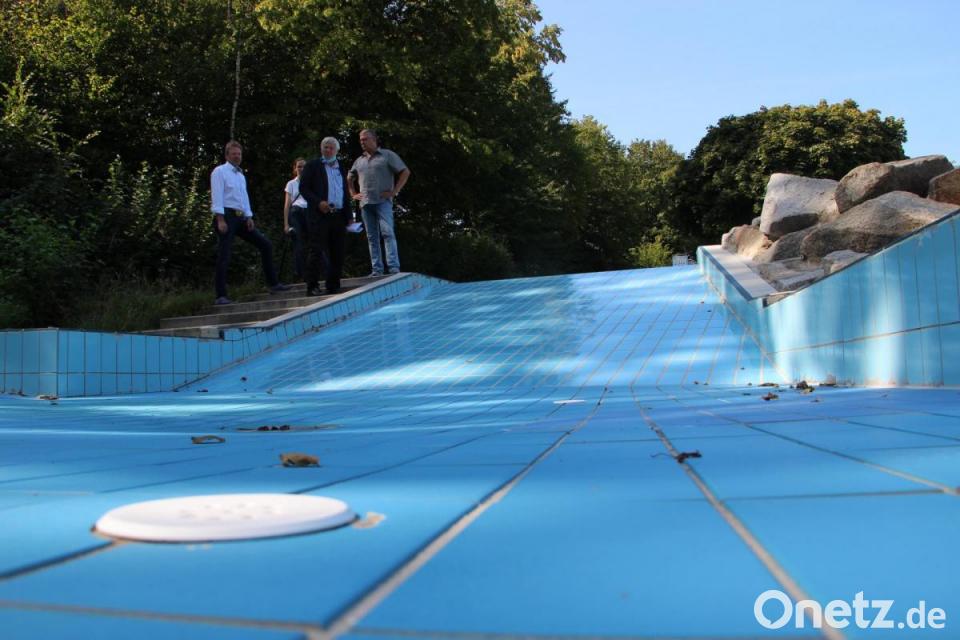 Das Freibad hat bereits seit 6. September geschlossen, für Bundestagsabgeordneten Alois Karl sperrte es nun noch einmal auf. Der CSU-Politiker machte sich zusammen mit Bürgermeister Märkl und Schwimmmeister Uwe Paul ein Bild von den anstehenden Arbeiten. Alois Karl ist Mitglied im Haushaltsausschuss und hat nach eigenen Worten Sorge dafür getragen, dass Freudenberg doch noch berücksichtigt wurde.