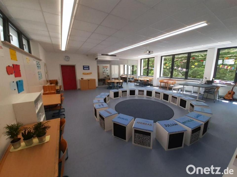 In vier Klassenzimmern wurde das neue Konzept bereits umgesetzt. In der Mitte des Raumes befindet sich nun ein großer Sitzkreis mit fest zugeordneten Schülerplätzen. Jeder Platz hat eine Aufbewahrungskiste für die Schulsachen. Die altbewährten Schülertische wurden an die Wände gerückt oder zu Gruppentischen zusammengestellt. "So entsteht ein luftigeres Raumgefühl", erklärt Leitz, was sich positiv auf die Lernatmosphäre auswirke.