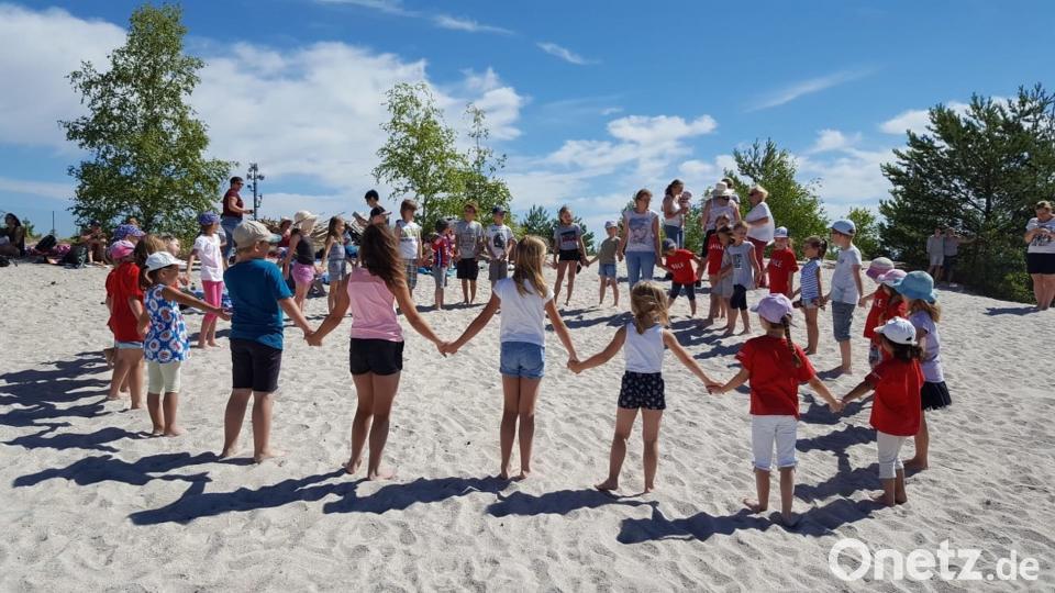 (gri) Im Ferienprogramm verbrachten die 25 Kinder einen Tag auf dem Monte Kaolino in Hirschau. Betreut von Daniela Brunner und Marinna Daubenmerkl erklommen die Mädchen und der eine Bub in ihren Reihen den "weißen Riesen", der ihnen gar nicht mehr so weiß erschien, weil mittlerweile viele Pflanzen und sogar Bäume auf dem Quarzsand wachsen. Eine Riesen-Gaudi hatte die Gruppe, als es quasi im freien Fall nach unten ging. Die Purzelbäume waren schon mal ein gutes Training für die kommende Saison.