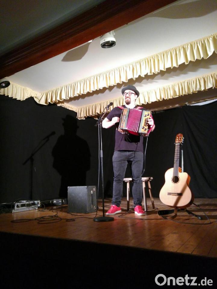Im voll besetzten Pfarrsaal begrüßte der örtliche CSU-Vorsitzende Daniel Rupprecht die Besucher zu einem „Krampf, und zwar an Gscheiten“. Der Musikkabarettisten mit Hut und Hornbrille, der aus Runding bei Cham stammt, stellte an den Beginn seiner Aufführung einen Rat seiner Oma: „Sag Grüß Gott zu allen, es kannt ja dein Vadda sei“ sowie ein Lob auf „Frejmberch“ und Wutschdorf. Es folgten seine Erfahrungen in Paris und Amsterdam. Sei die nächtliche Sonnenfinsternis in der französischen Hauptstadt das Beste gewesen, so gab er dem Coffeeshop mit den komischen Zigaretten in Amsterdam die Schuld, dass ihm dort ganz „schwindlich worn is“, so dass er schließlich sogar bei der Kötzinger Polizei habe anrufen müssen.