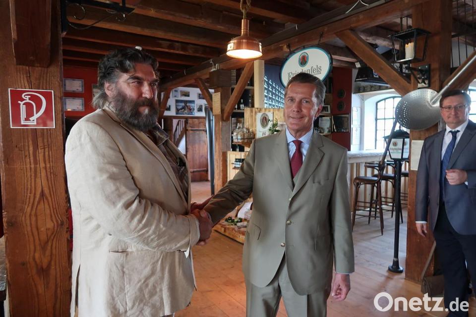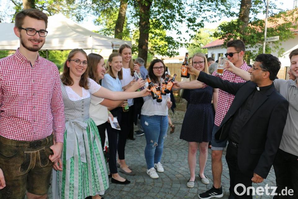 Eine Überraschung hatte sich der Baron noch aufgehoben: Aus einem großen Stein, der neben dem Marienbrunnen künftig frisches Trinkwasser spendet, kam zur Einweihung Friedenfelser Bier. Dass dieser Gerstensaft etwas Besonderes war, bewies die stets lange Menschenschlange. Auch den Vertretern der Geistlichkeit schmeckte es köstlich, wie Bischof Boscol Puthur bestätigte.