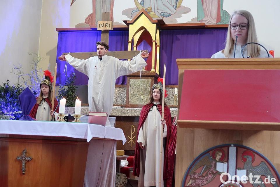Viele Kirchenbesucher konnten es kaum glauben: Nach nur sieben Proben inszenierten die "Minis" um Pfarrer Joseph eine überwältigende Darstellung des Leidens Jesu vor dem Hochaltar. Der Eindruck, den die Zuschauer bei der fast halbstündigen Aufführung anstelle des Evangeliums mitnahmen, war nachhaltiger denn je. Deshalb endete der Sonntagsgottesdienst auch mit einem langen Applaus für die über 20 Lausbuben Gottes. Pfarrer Joseph würdigte die professionellen Leistungen am Ende ganz besonders. Wie bei den großen Passionsspielen legten die jugendlichen Laienakteure besonderen Wert auf das gesamte Altarbild. Dazu passte angefangen von der Kleidung der Darsteller über den extra freiwillig auferlegten Bartwuchs von Jesus-Darsteller Philip Schraml bis hin zu besonderen Lichtszenen und Raucheinsätzen einfach alles.