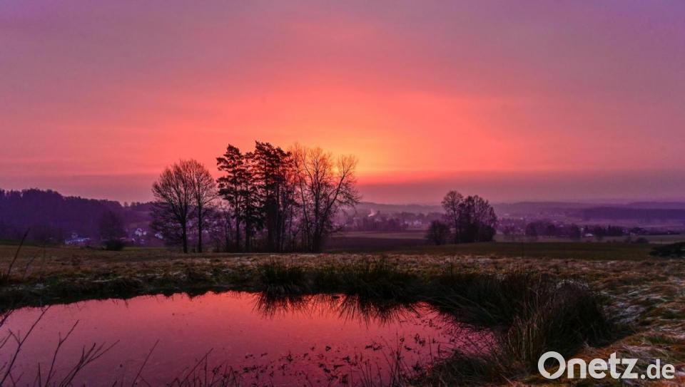 Ein spektakuläres Wetterphänomen färbte am Donnerstagmorgen den Himmel über Friedenfels mit der aufgehenden Sonne blutrot. Feine orangerote Sandkörner, die durch die südliche Luftströmung aus der Sahara zu uns geweht werden, führen derzeit zu faszinierenden Lichteffekten. Dieser Sandwind aus Nordafrika (Calima auf den Kanarischen Inseln genannt) trübt den Himmel ein und führt bei Niederschlägen zum sogenannten "Blutregen", der manche Autobesitzer zur Verzweiflung bringt. Der Staub an sich ist aber ungefährlich.