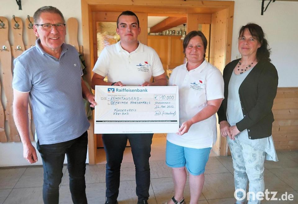 Unglücklich bewerteten Mitglieder des Förderkreises vor allem die Diskussion im Gemeinderat um die Wassertemperatur und die Absenkung auf 18 Grad. Höhere Werte sollte die Solaranlage liefern. Hierzu hatte der Förderkreis nun eine große Überraschung parat. Eine Spende von 10.000 Euro soll dafür sorgen, dass die im Friedenfelser Freibad gewohnte Wassertemperatur von 24 Grad auch in diesem Jahr wieder möglich wird. Bürgermeister Oskar Schuster war von der Aktion sichtlich überrascht und dankte dem Förderkreis für seine Unterstützung.