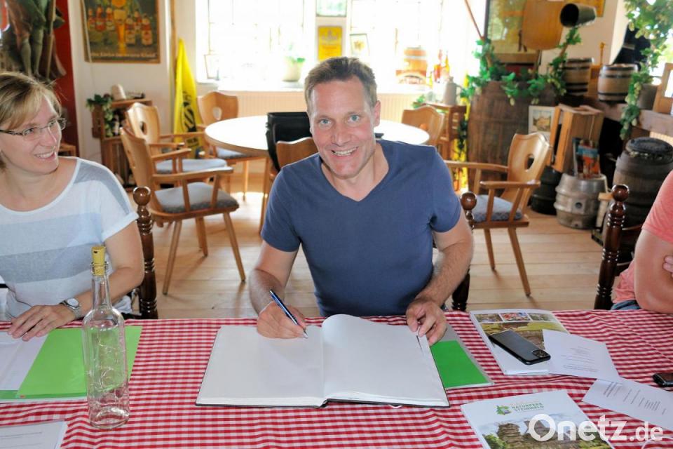 Für Heiterkeit sorgte Bürgermeister Oskar Schuster vor der Abreise der Gäste beim Eintrag von Ludwig Hartmann in das Goldene Buch der Gemeinde. „Bei uns war auch schon Markus Söder und hat, als er noch bei der Jungen Union aktiv war, im Goldenen Buch unterschrieben – und heute ist er Bayerischer Ministerpräsident.“ Ludwig Hartmann ließ sich die Seite im Buch zeigen, um ein Foto zu machen. „Das zeige ich ihm nächste Woche." Zum Abschied äußerte er sich begeistert von Friedenfels. "Ich könnte mir gut vorstellen, dass Friedenfels ein echtes 'Naturerlebnisdorf' werden könnte.“