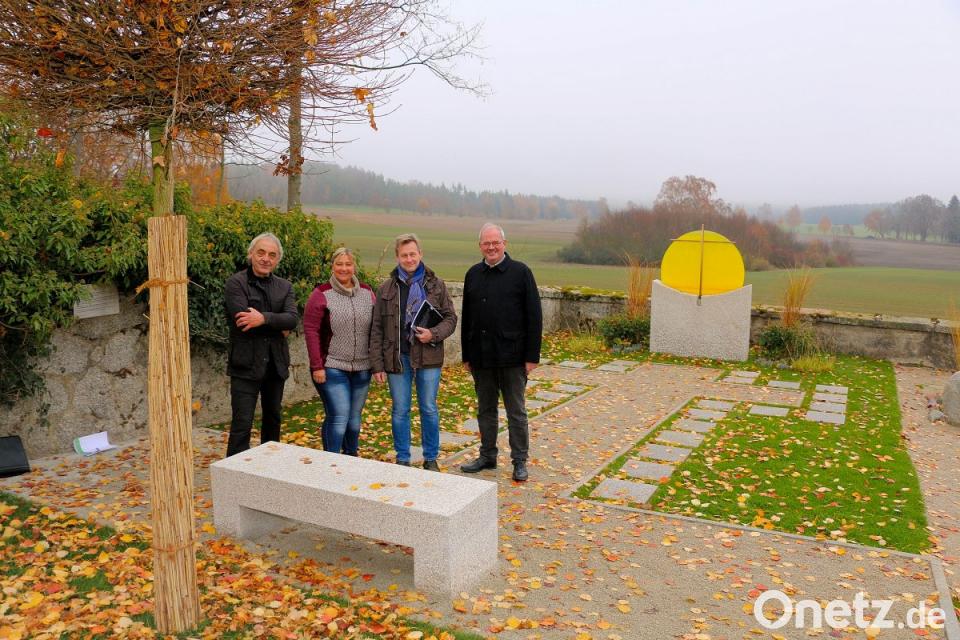 Nach Abschluss der letzten Arbeiten an der Urnenanlage war nun der Übergabetermin an die Gemeinde. Bürgermeister Gottfried Härtl freute sich über das gelungene Projekt und dankte besonders Erwin Otte für die Gestaltung, Planung und künstlerische Umsetzung. Lob zollte das Gemeindeoberhaupt auch Markus Münchmeier für die technische Betreuung und Ines Neugirg von der Firma Dumler, für die Pflaster- und Erdarbeiten. Des Weiteren waren an der Baumaßnahme die Firma Punzmann und die Firma Alfons Meierhöfer beteiligt.