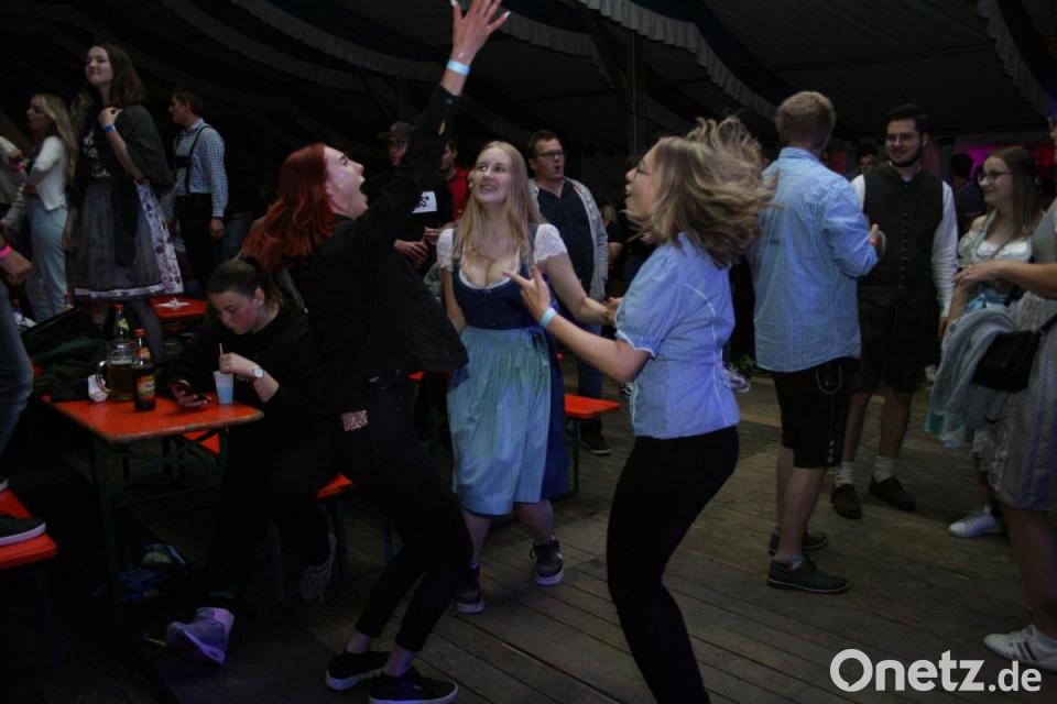 Die große Tanzfläche war bereits um 22.30 Uhr ziemlich voll. Gleiches gilt für die in Rotlicht getauchte Schnaps- und Cocktailbar. Gefühlt standen dort noch mal so viele Gäste wie vor dem angrenzenden Festzelt.