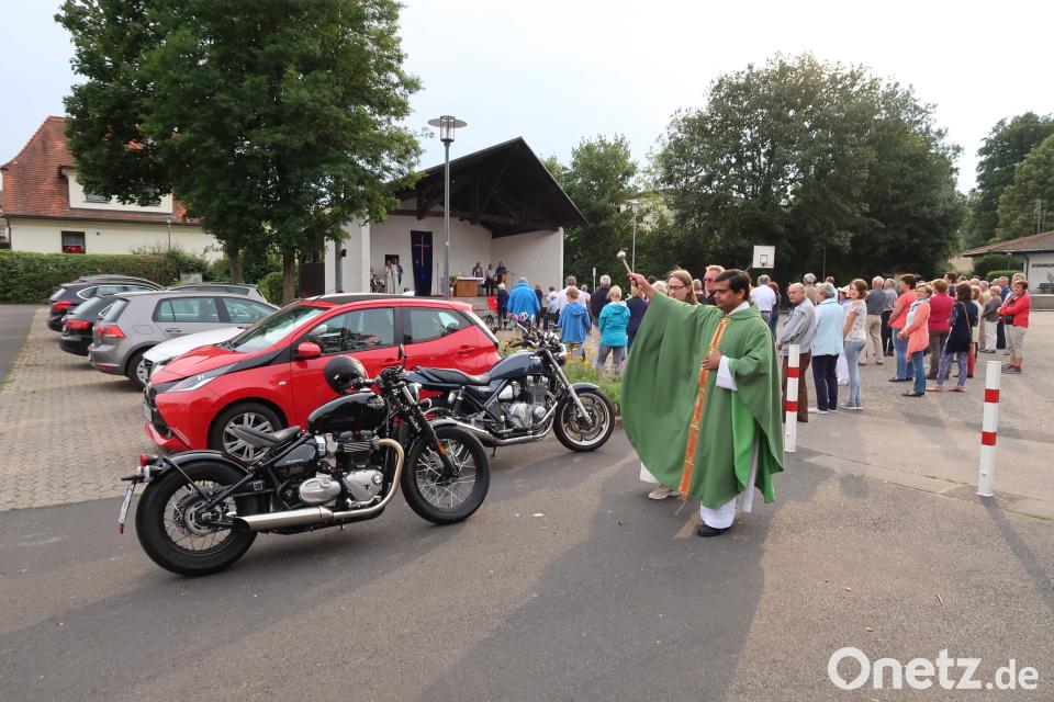(bsc) Bis auf den sprichwörtlich letzten Platz war die Stellfläche gefüllt, als der Geistliche am Ende des Gottesdienstes die geparkten Autos, Lastwagen, Wohnmobile, Motorräder, Mopeds und Fahrräder segnete. Den Fahrzeuglenkern gab der Priester einen guten Rat mit auf den Weg: Sie sollten tets Gottes Hilfe annehmen. Rücksichtsvoll und verantwortungsbewusst am Straßenverkehr teilzunehmen sei dabei eine tägliche Pflicht.