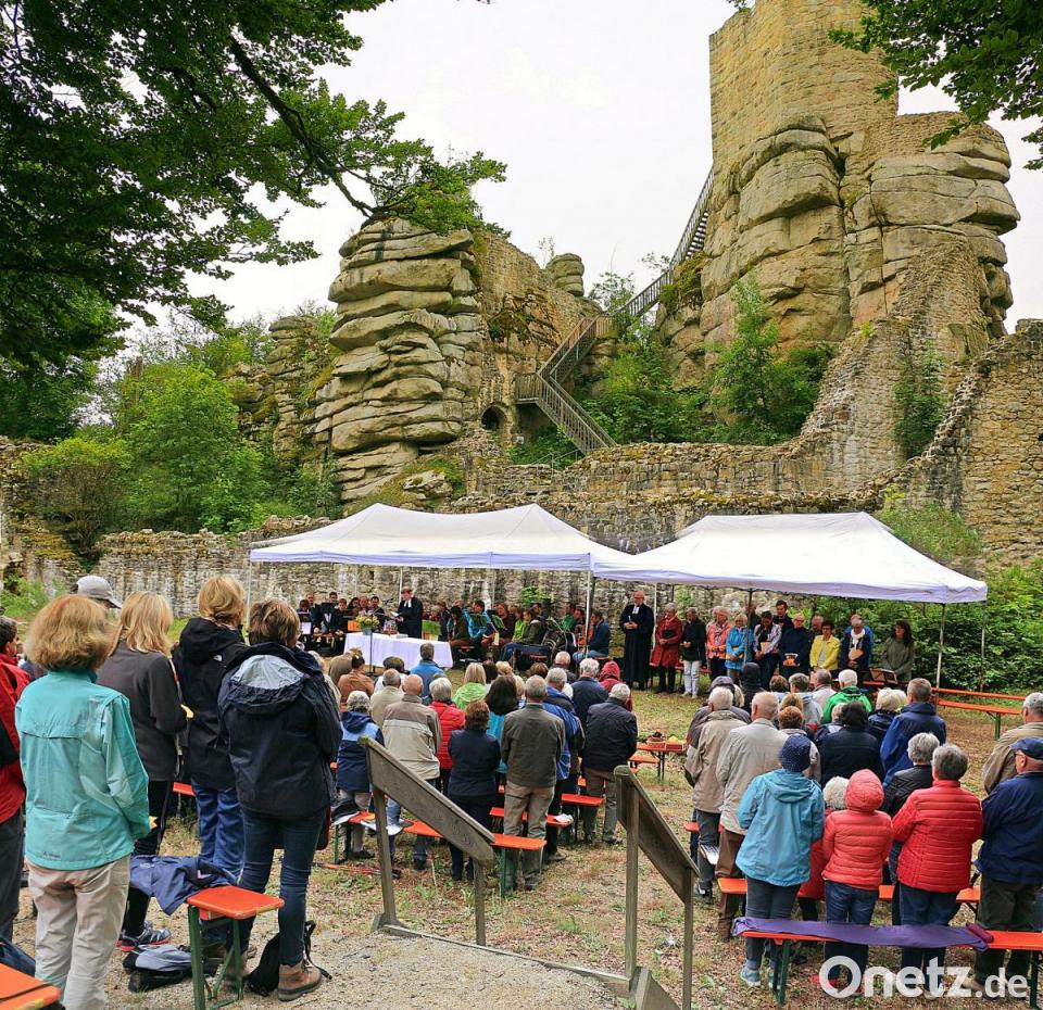 An die Adresse der Gläubigen gerichtet, meinte Pfarrer Kraft zu Beginn des Gottesdienstes: „Ihr seid die Mutigen, ihr habt trotz des nicht idealen Wetters den Weg herauf zur Burg gefunden. Ihr seid hinausgegangen in die Natur, um von Gottes Kraft etwas zu spüren.“ Die starken Mauern der Burg verglich der Pfarrer mit dem Thema des Gottesdienstes - "eine feste Burg ist unser Gott". Und er betonte: "Gott ist ewig.“